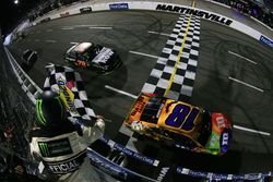 The sun went down, the new lights came on, and it all broke loose at Martinsville Speedway. In a wild overtime finish that took Sunday's First Data 500 to 505 laps at the .526-mile short track, Kyle Busch beat Monster Energy NASCAR Cup Series leader Martin Truex Jr. to the stripe by .141 seconds to take the checkered flag and earn a spot in the Nov. 19 Championship 4 race at Homestead-Miami Speedway. As Busch crossed the finish line, a multi-car wreck behind him scrambled the running order and left a parking lot of mangled cars on the frontstretch. Truex retains the series lead by 17 points over Busch. Elliott, on the other hand went from likely winner to major casualty in the space of one corner, finishing 27th and falling 26 points below the cut line for the Championship 4, with the cut coming in two weeks at Phoenix. Keselowski is third in the standings, followed by Harvick, who holds a three-point edge over Jimmie Johnson, who ran 12th on Sunday. Blaney is six points behind Harvick and Hamlin is eight back.