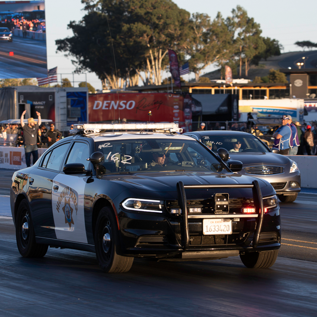Part of the Sonoma Raceway Sonoma Drags program, Top The Cops provides teens with a safe, legal environment to experience drag racing while promoting responsible driving habits and positive engagement with law enforcement. Participants line up on the quarter-mile drag strip to race side-by-side against uniformed officers driving their patrol vehicles — a unique format that has become a signature of the program.
